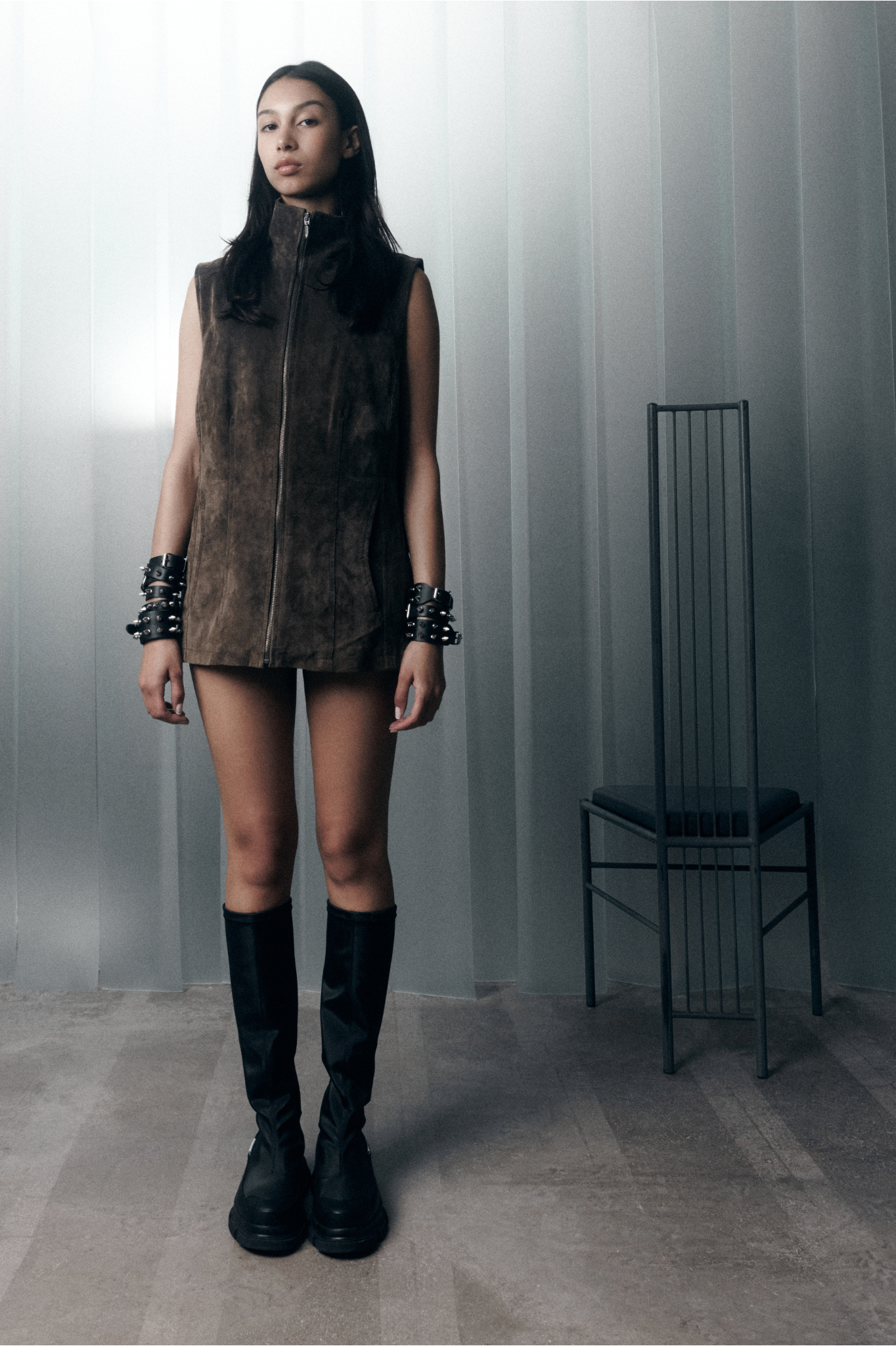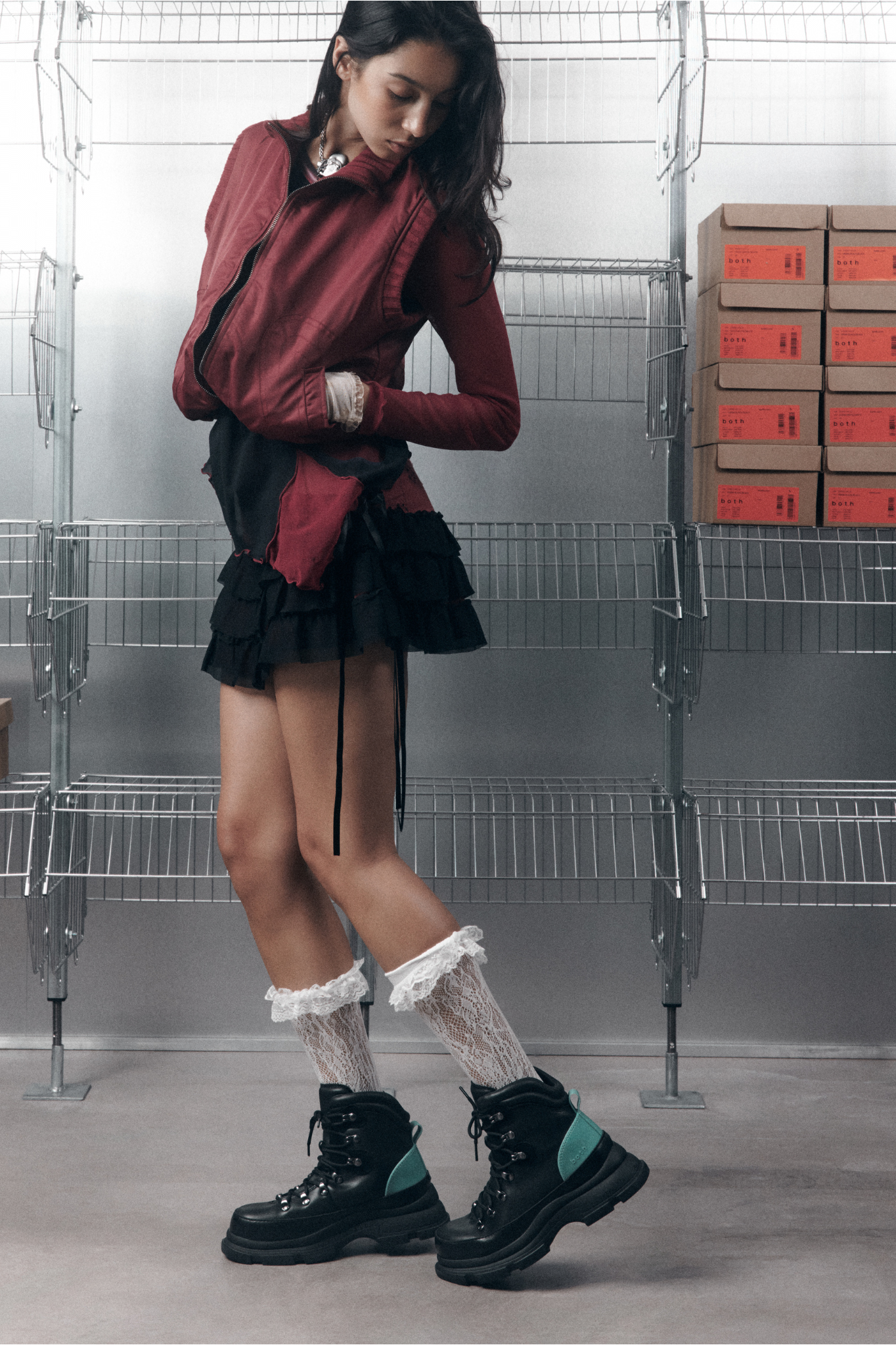 Delving into the enigmatic allure of these nocturnal creatures, b o t h offers a range of accessories for the modern night owl, from heels to boots to bags, featuring striking metal ornaments and other bold materials borrowed from punk culture such as bashed leather, cow hide and denim. New to this season, b o t h introduces the RE:RE sole, a new take on the signature GAO sole. Catering to a diverse range of individual styles, the AW24 collection melds craftsmanship with contemporary urban aesthetics, allowing wearers to express their unique personalities effortlessly, thus embracing individuality and the spirit of nonconformity.