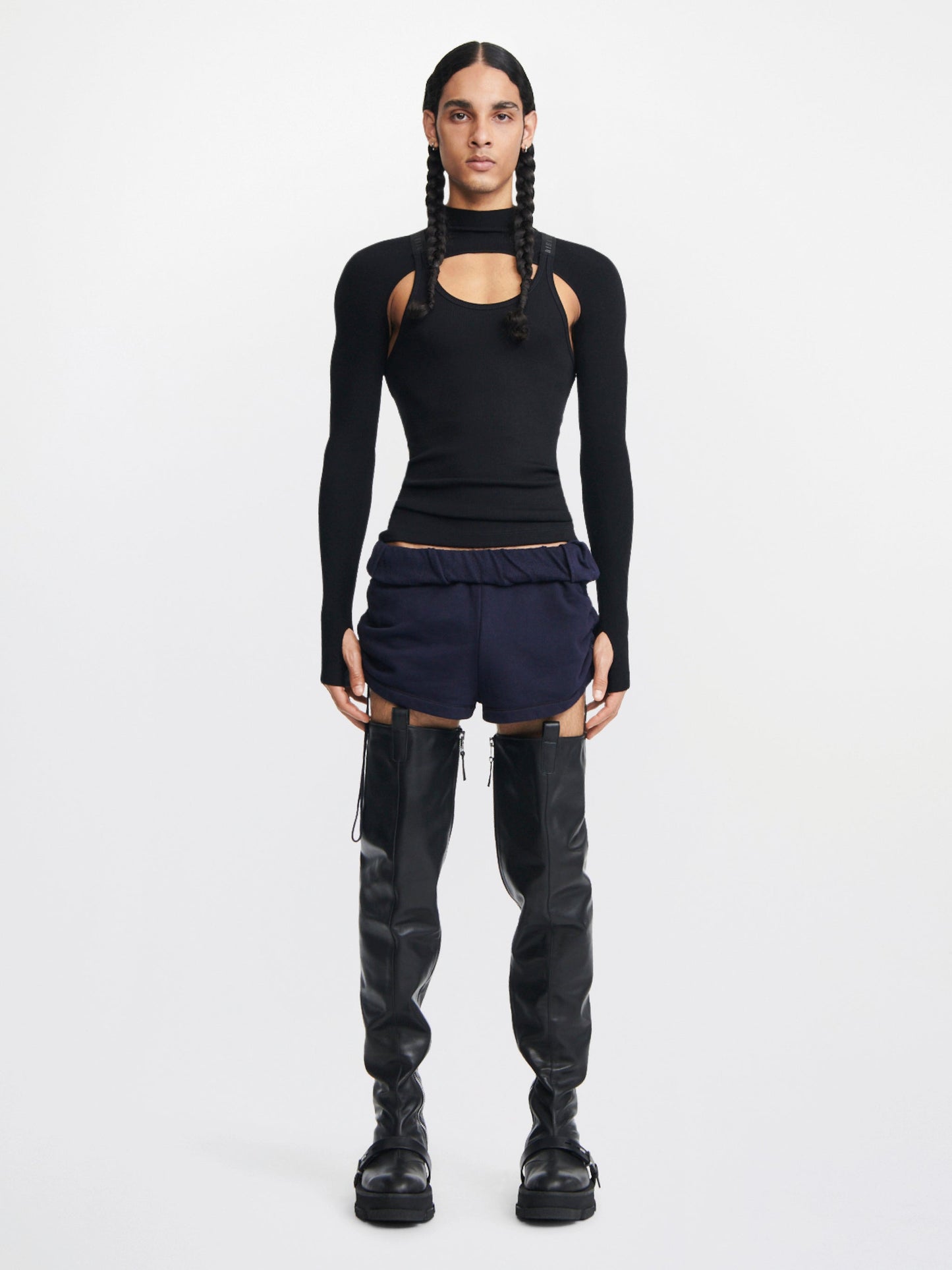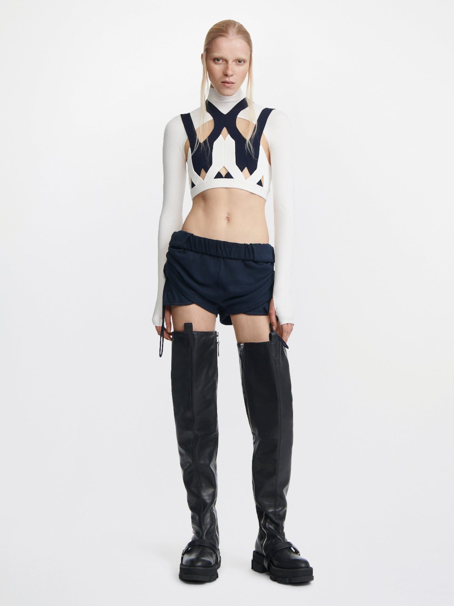 both x DION LEE-GAO PLATFORM THIGH-HIGH BOOT BLACK. These boots are more than just a fashion statement - the platform adds height adds a touch of functionality. Perfect for the daring and playful fashionista!