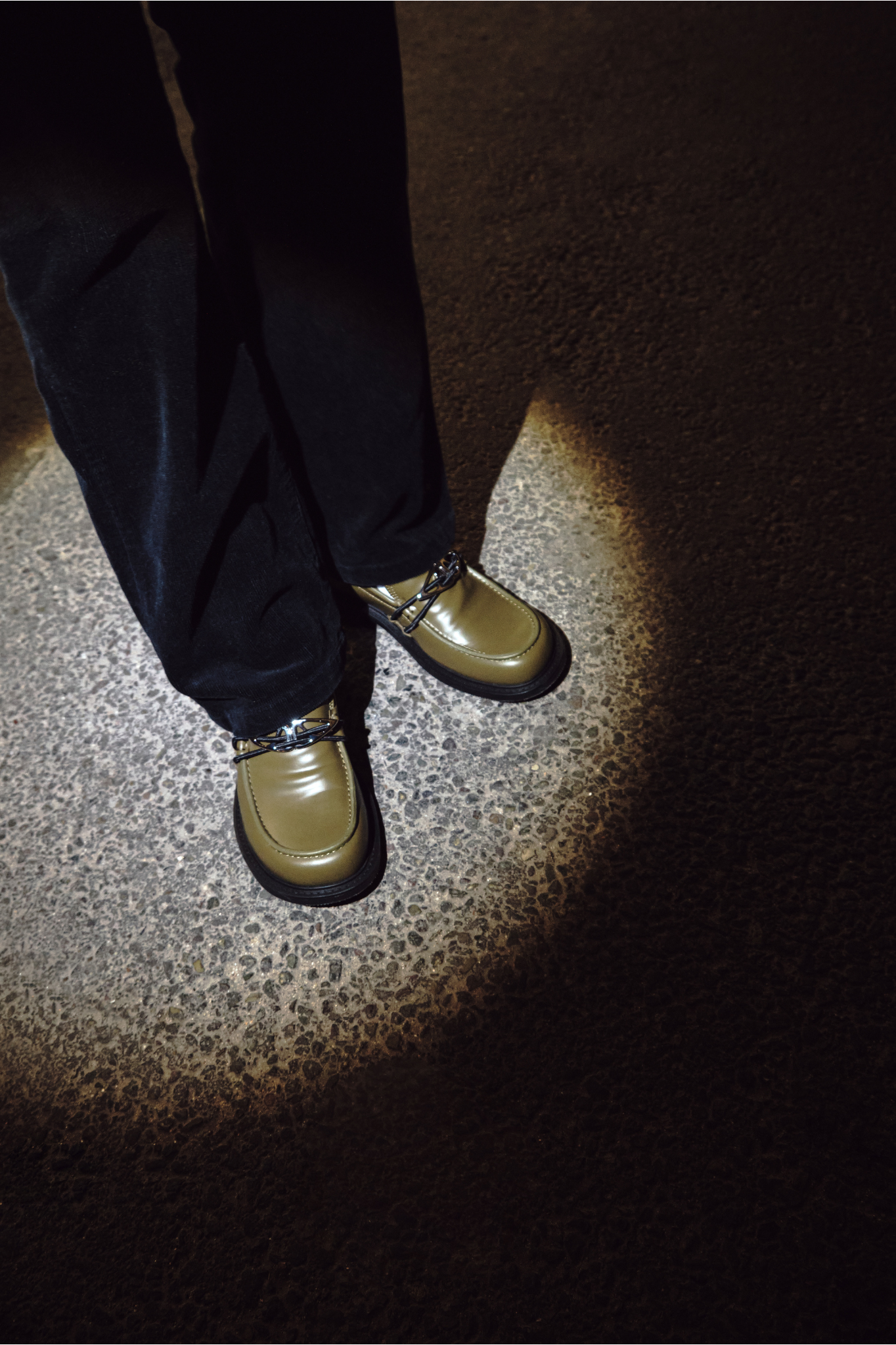 Another new feature in the RE:RE collection is the distinctive metal moth ornament, used to adorn the moccasin loafer, moccasin boot and maryjane highlighting the moth, symbol of rebirth and novelty.