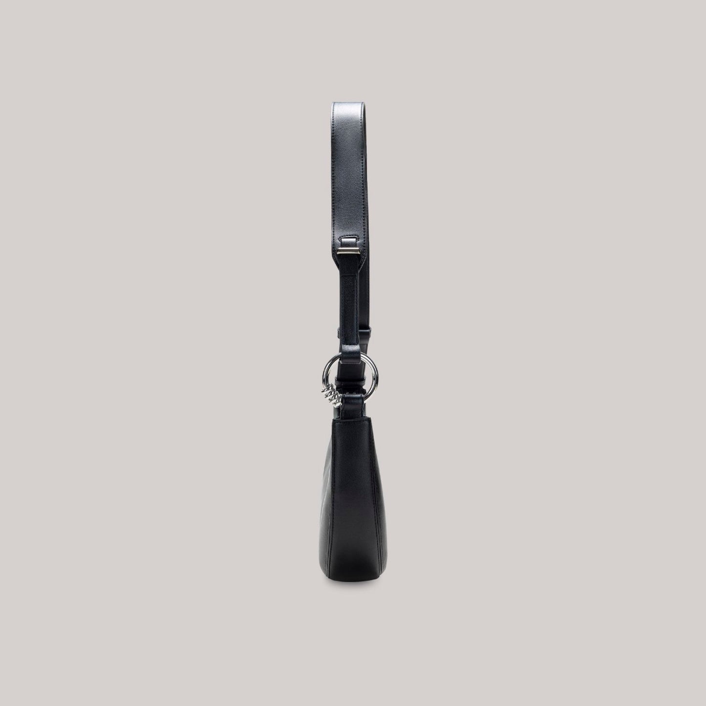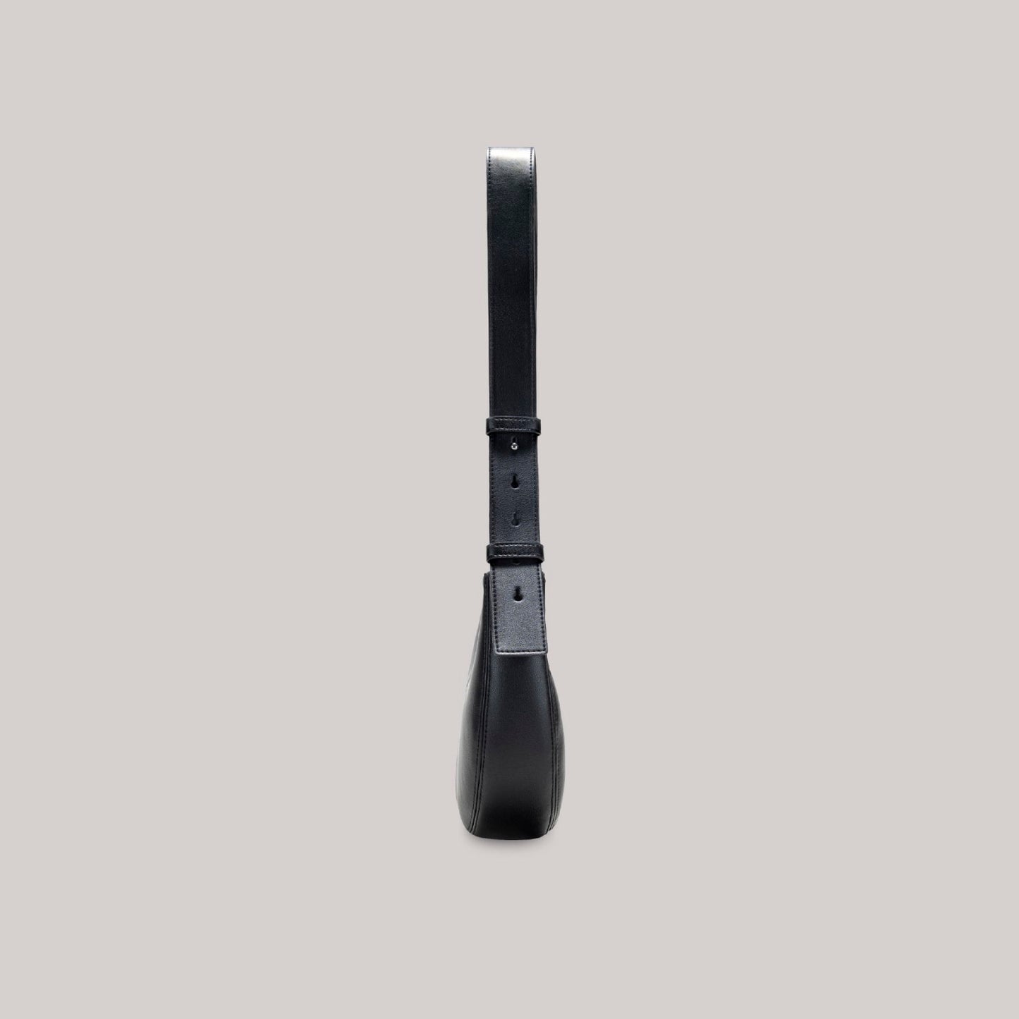 Introducing brand new GAO SHOULDER BAG in classic black. Its unique half-moon shape is sure to turn heads, while the pierced details add a touch of edge. Perfect for carrying all your essentials, all while looking effortlessly cool. Don't miss out on this essential accessory!
