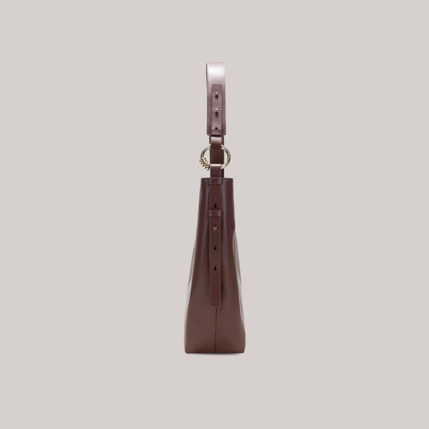 Carry all of your essentials in style with the GAO Tote Bag in sleek Brown. The spacious design and durable leather material make it perfect for everyday use. Plus, with pierced details, you'll add a touch of edgy chic to any outfit.