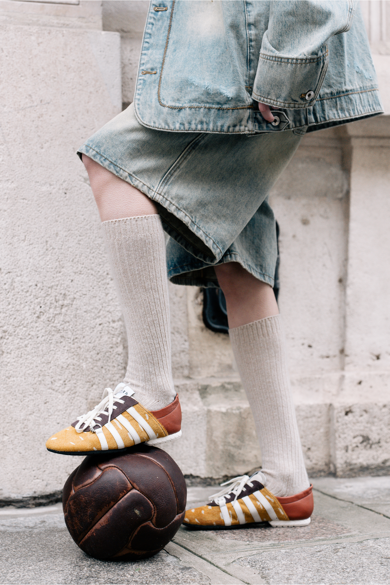 Drawing inspiration from boxing shoes, but also from sporty ballet flats from the 90s and 00s. The Tyres Glider elevates traditional sneaker aesthetics by incorporating unconventional materials like spotted pony and silver leather. Its sole, while sleek, is crafted from a blend of natural rubber and recycled plastic, ensuring both durability and comfort.