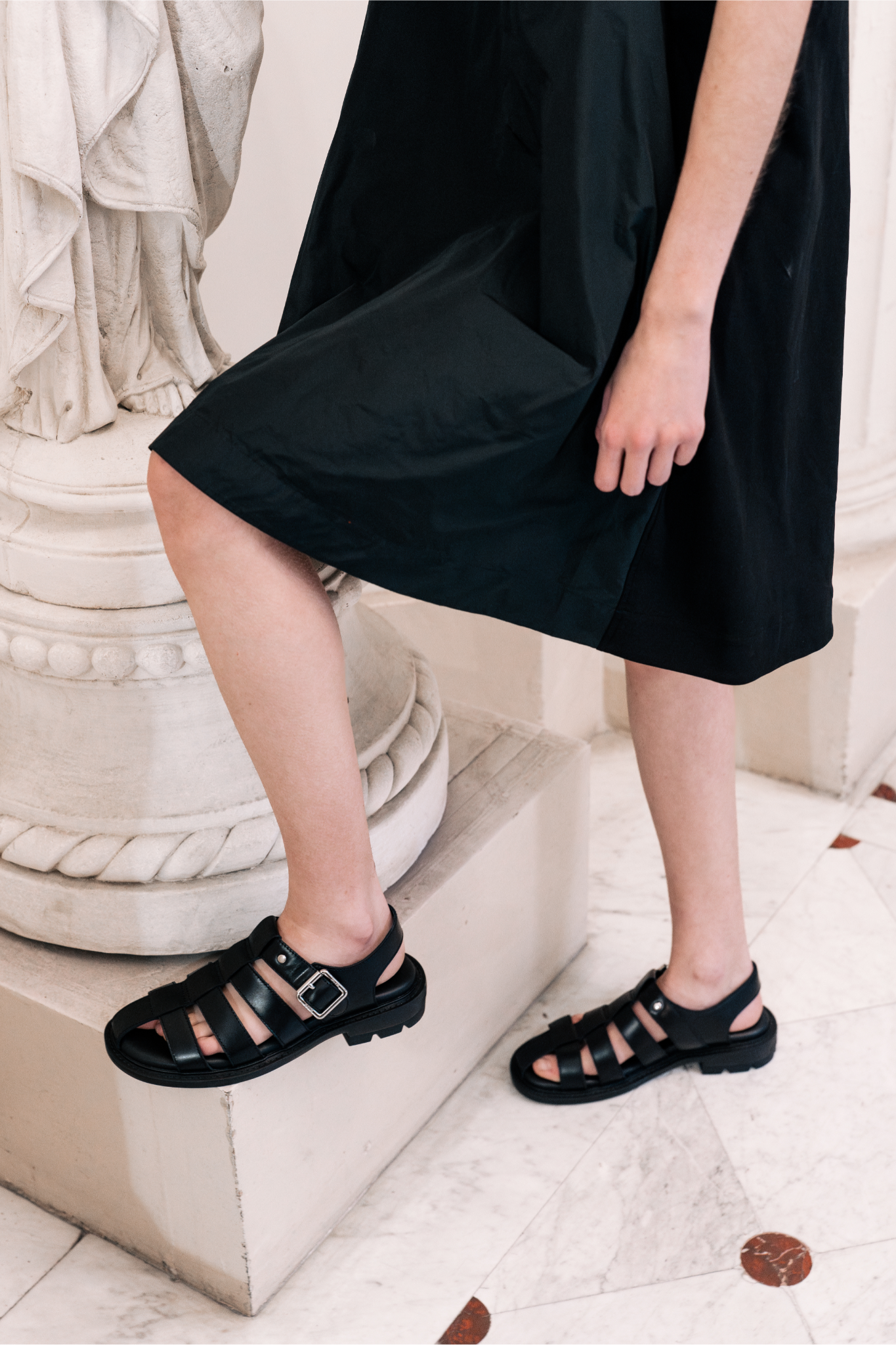 A tribute to the "Grandpa Cool" trend, the RE:RE reimagines classic archetypes such as the fisherman sandal, Maryjane, and mule. This collection features a distinctive metal piece inspired by the world of piercing and subcultures, adding a modern twist to timeless designs.