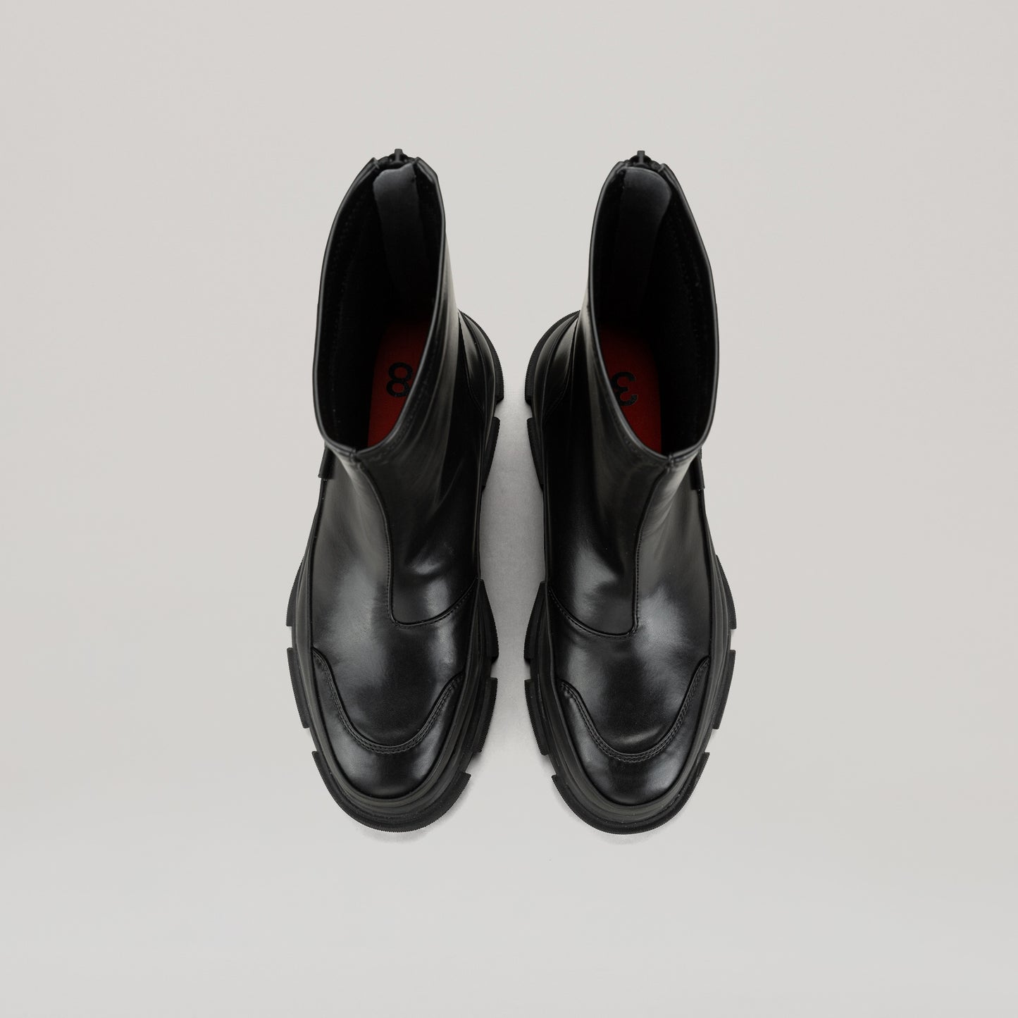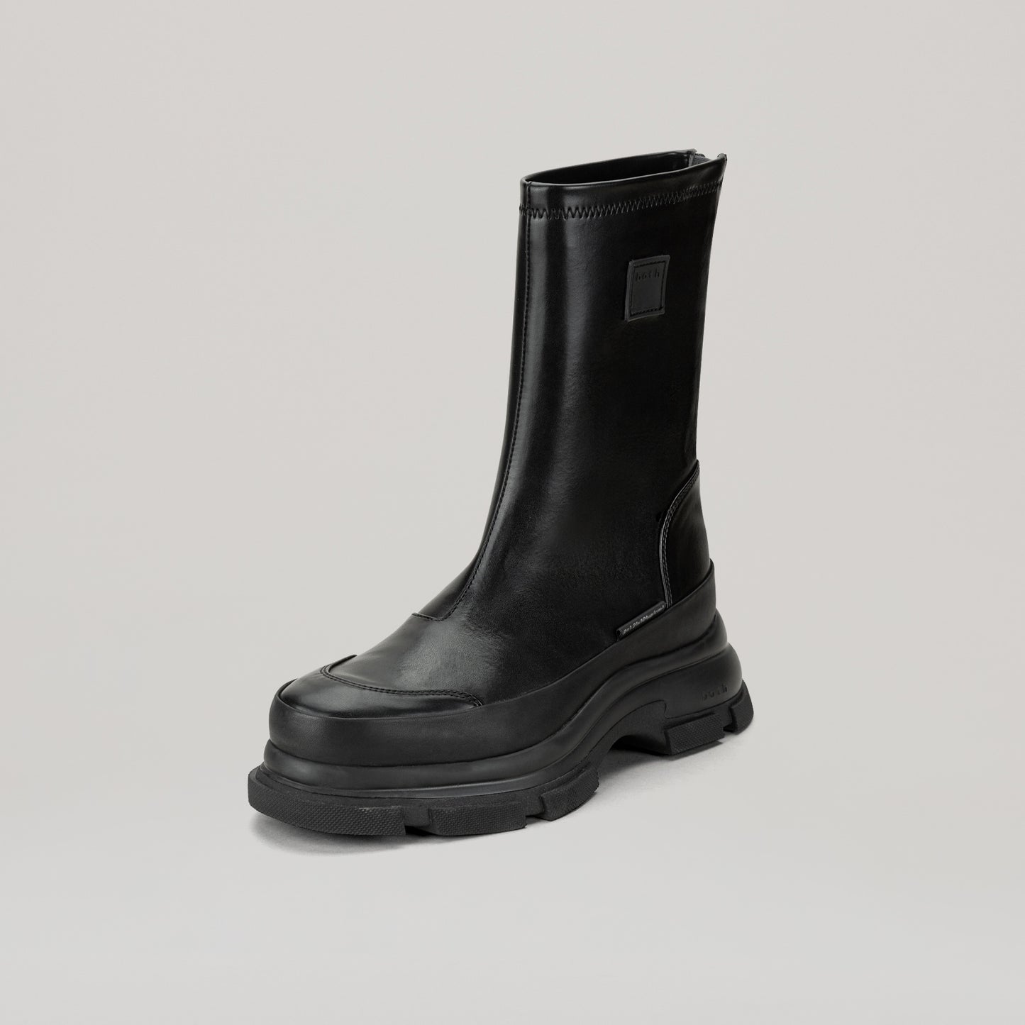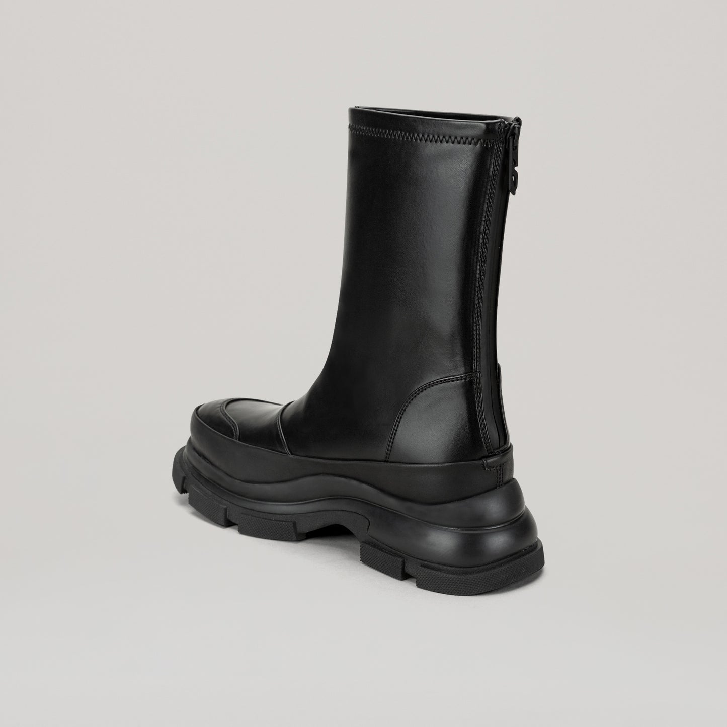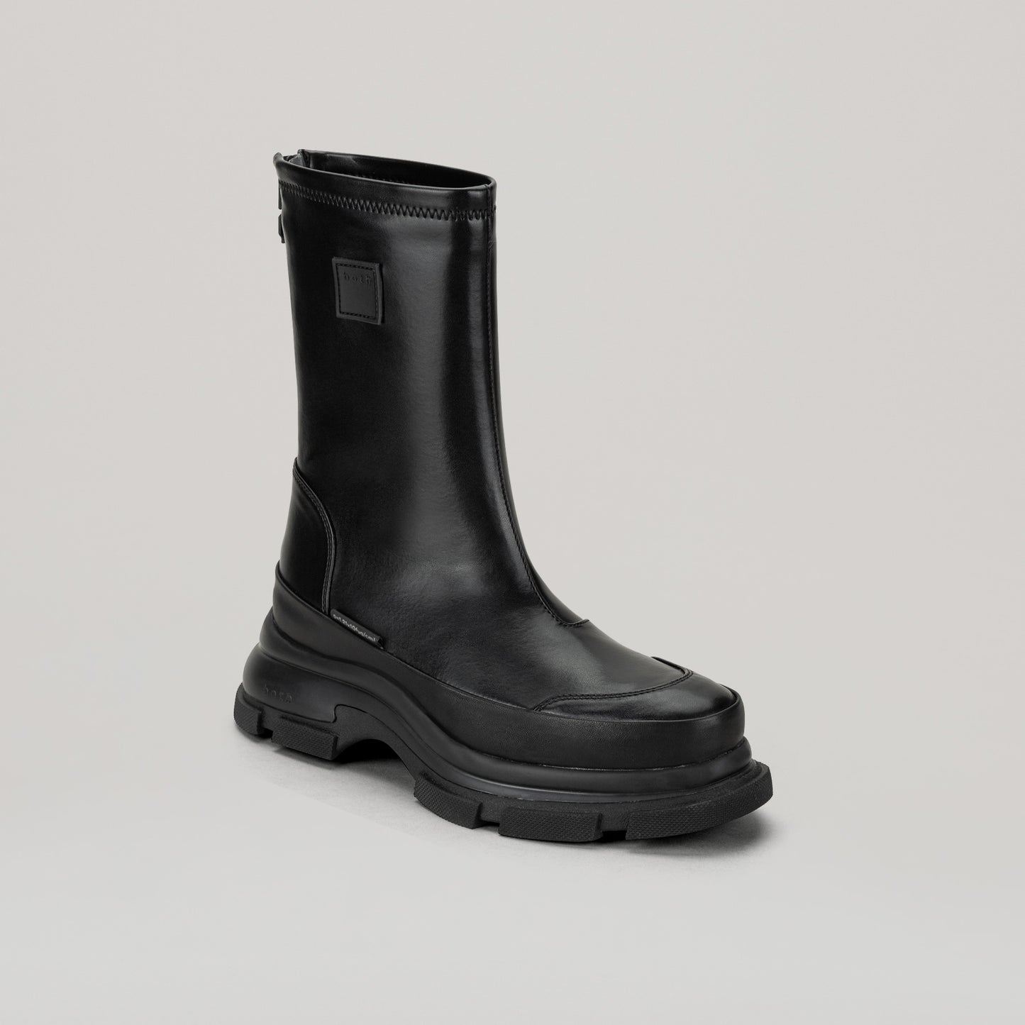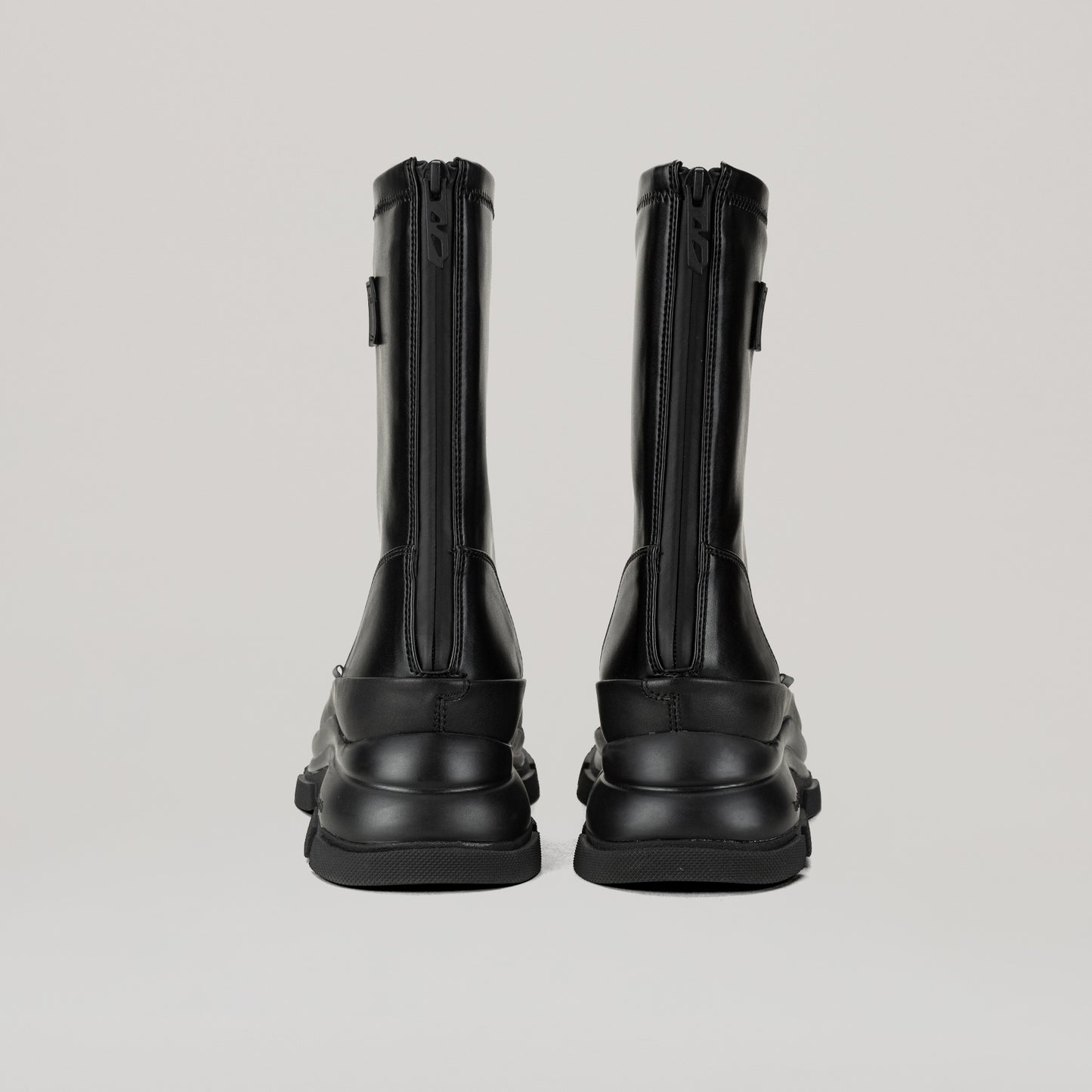 Expertly designed for both men and women, both - GAO EVA HIGH BOOTS in classic black provide ultimate style and convenience. Featuring a back-zip for easy on and off, these unisex boots boast a platform design and are crafted with high-quality PU pleather material for long-lasting wear.