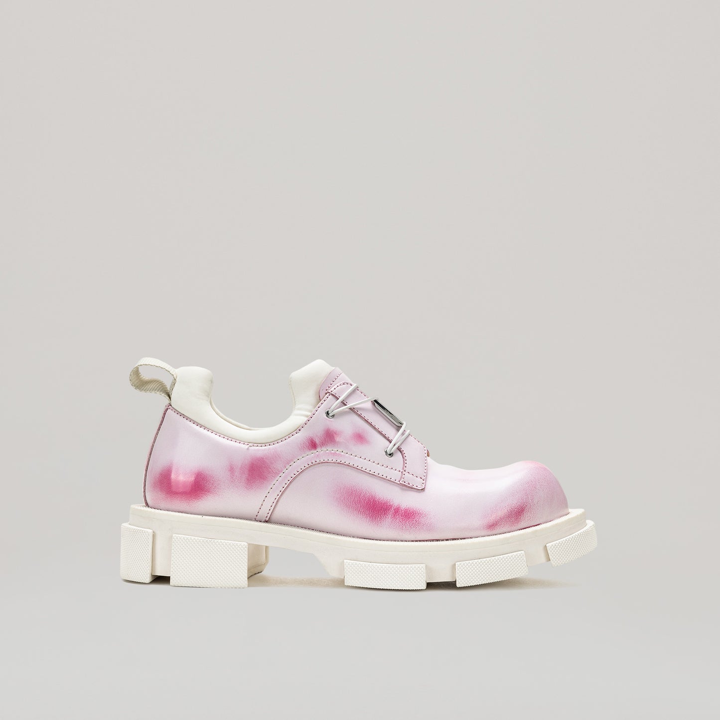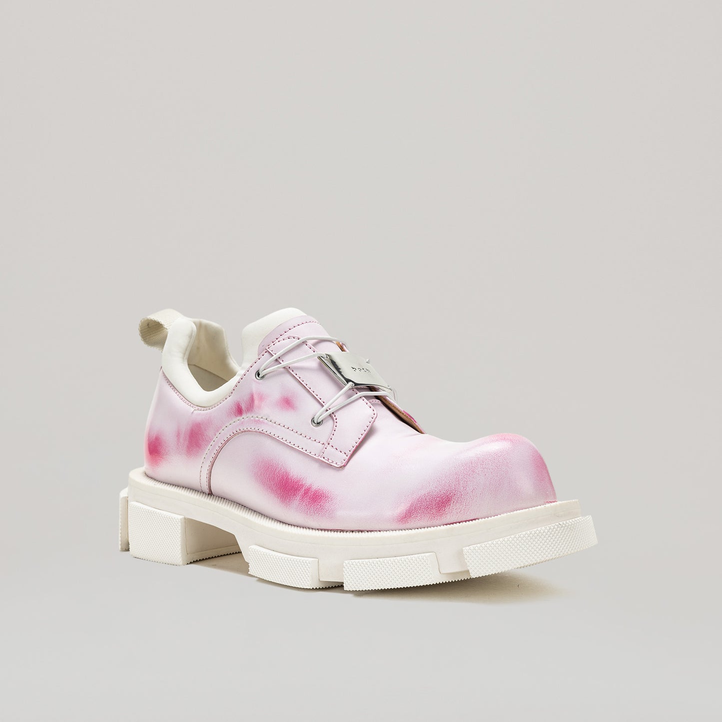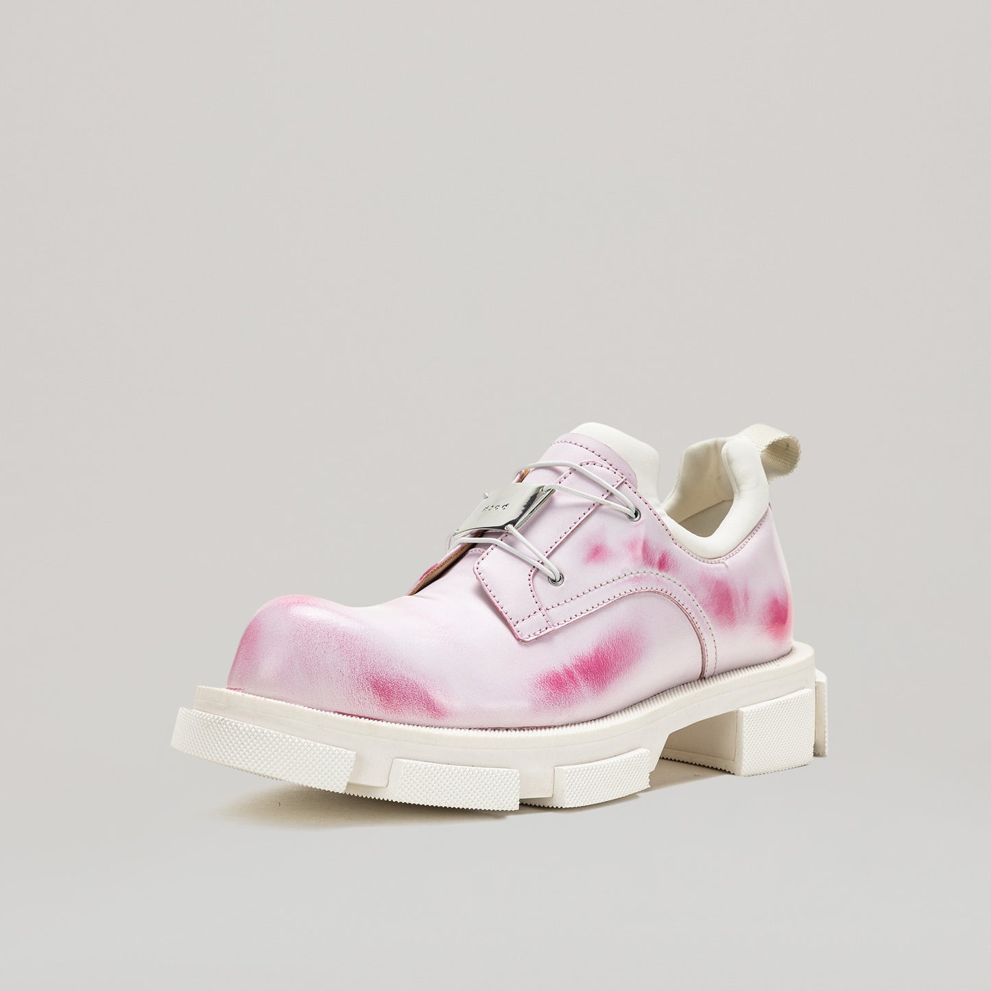 Expertly crafted both - GAO METAL LOGO DERBY, made with two-tone calf leather for a sleek and durable finish. The iconic metal logo plate adds a touch of sophistication to the chic white and brushstroke pink colour combination. Perfect for elevating any outfit.