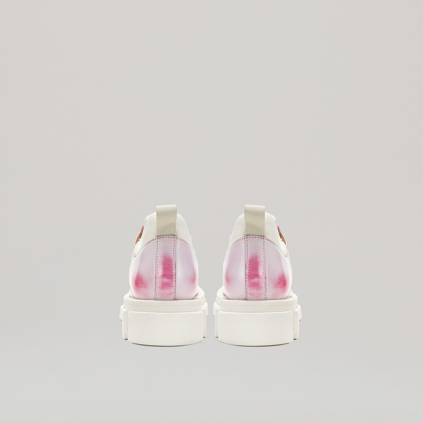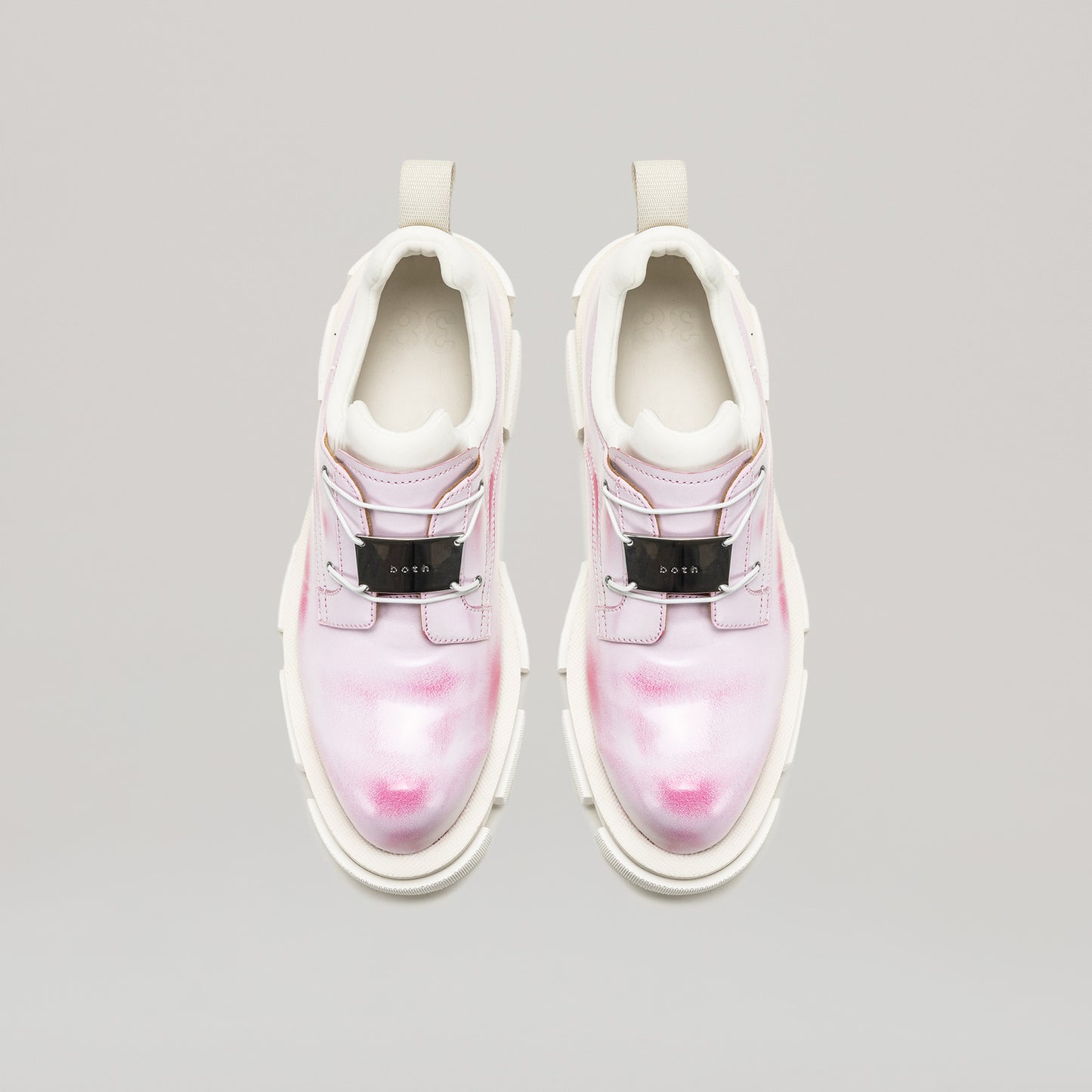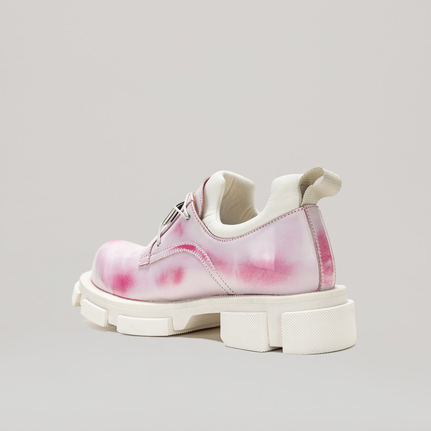 Expertly crafted both - GAO METAL LOGO DERBY, made with two-tone calf leather for a sleek and durable finish. The iconic metal logo plate adds a touch of sophistication to the chic white and brushstroke pink colour combination. Perfect for elevating any outfit.