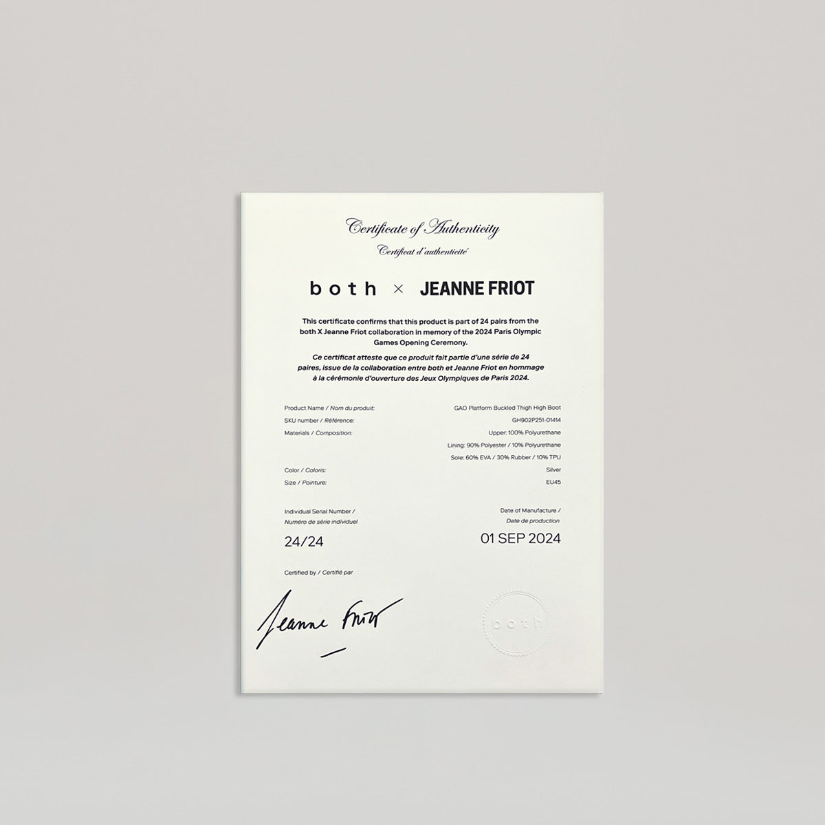 Each pair comes with a certificate, and designer Jeanne Friot personally signs each one, making every pair truly unique.