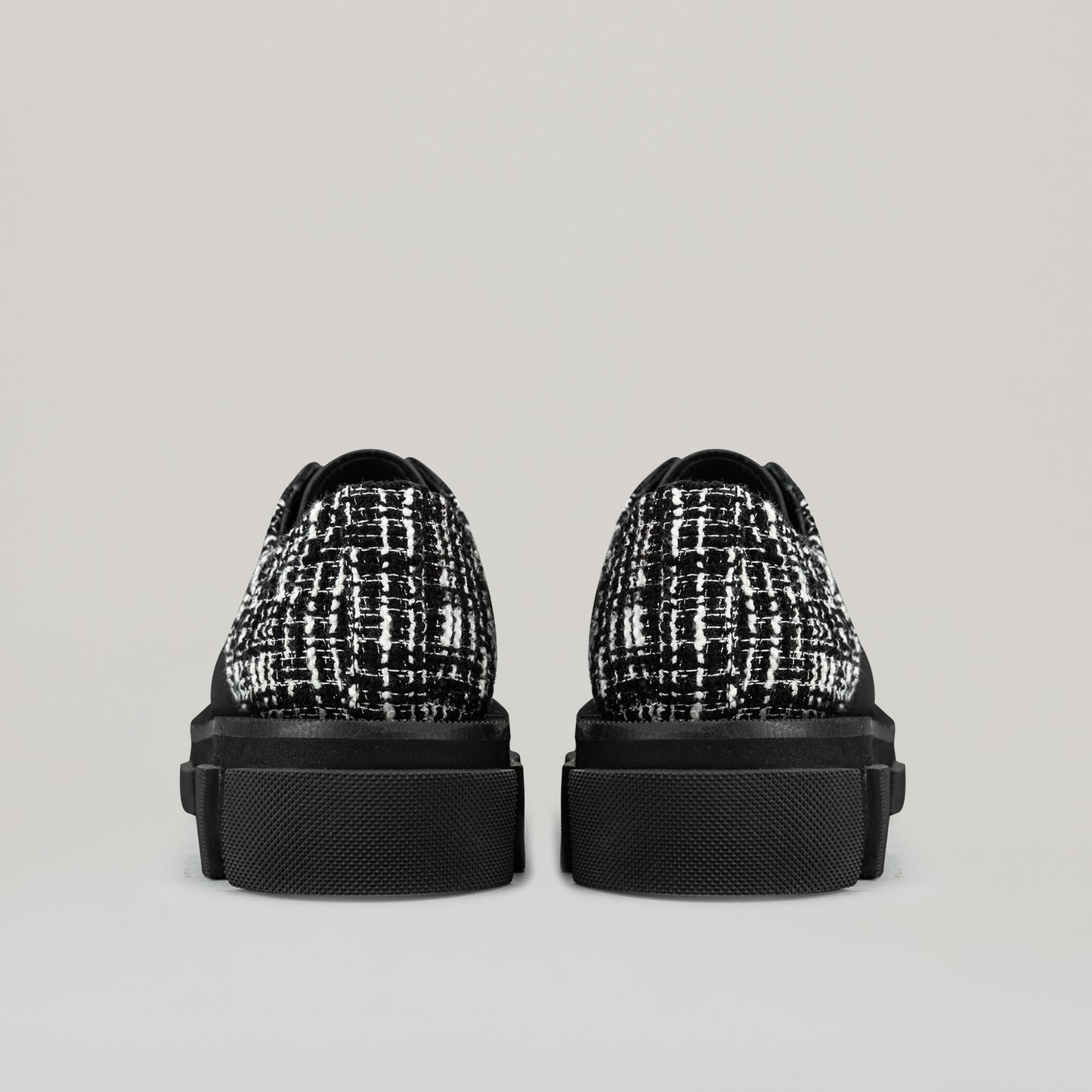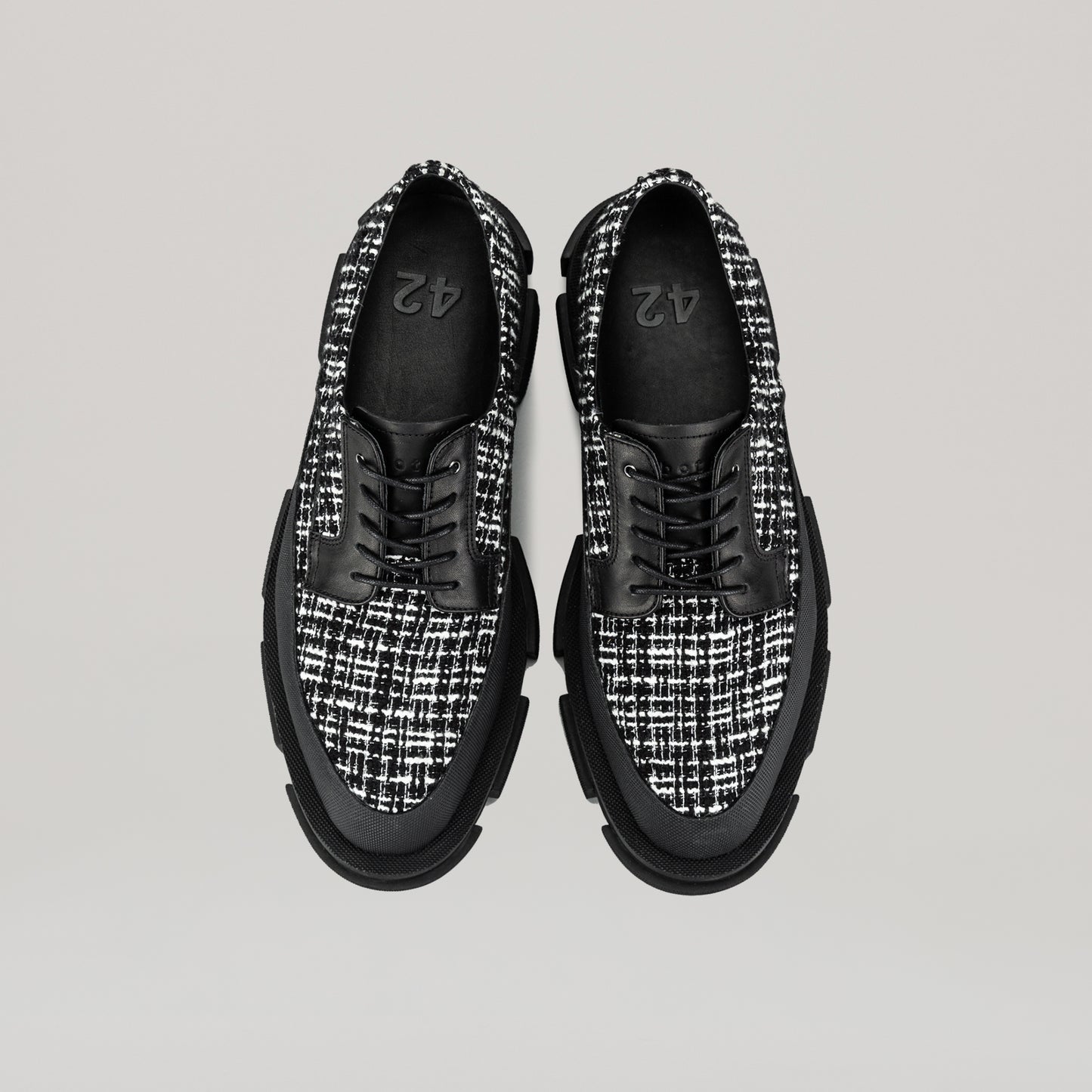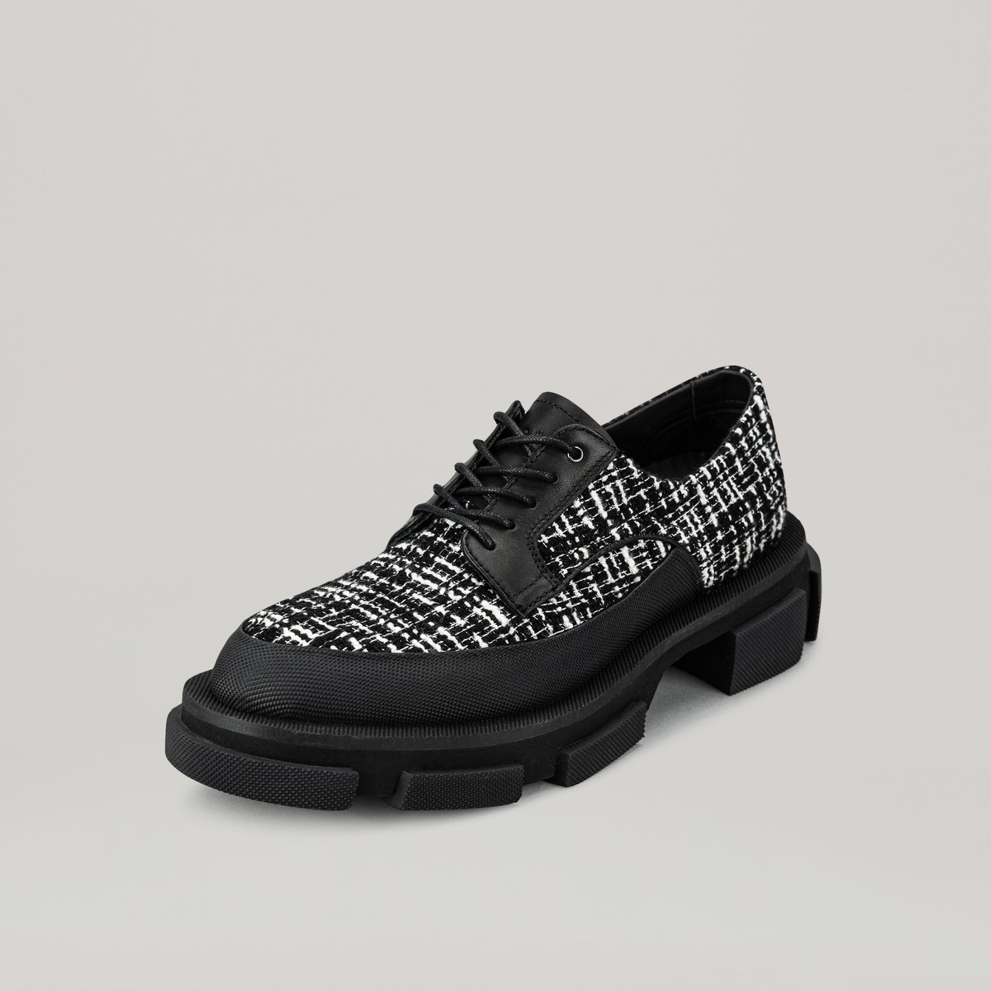 Experience timeless style and comfort with the GAO DERBY-BLACK shoes. These derbies feature a signature design with tweed upper that offers a unique touch to any outfit. Crafted with quality and elegance in mind, these shoes are versatile and suitable for any occasion. Elevate your wardrobe and step out in confidence with both - GAO DERBY-BLACK.