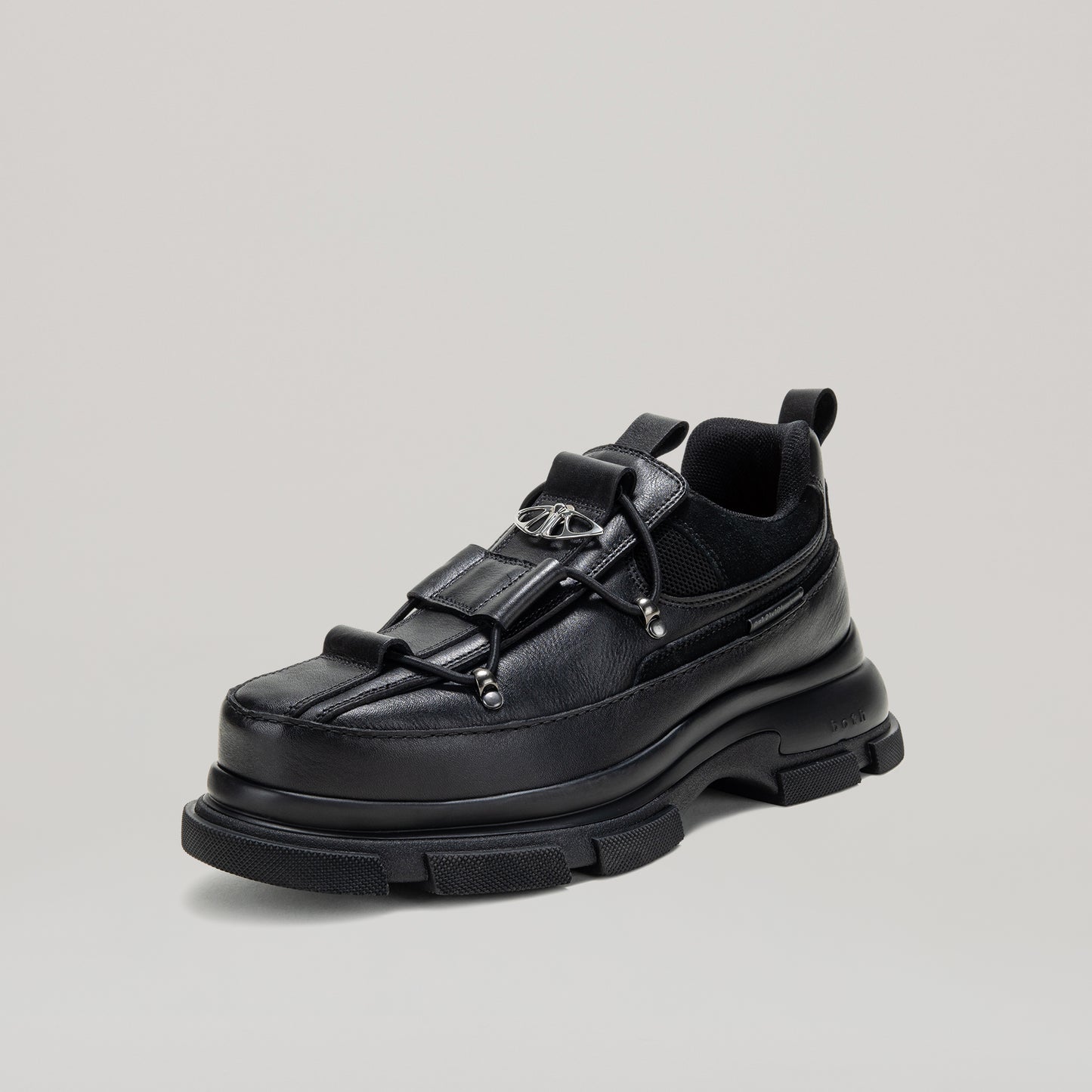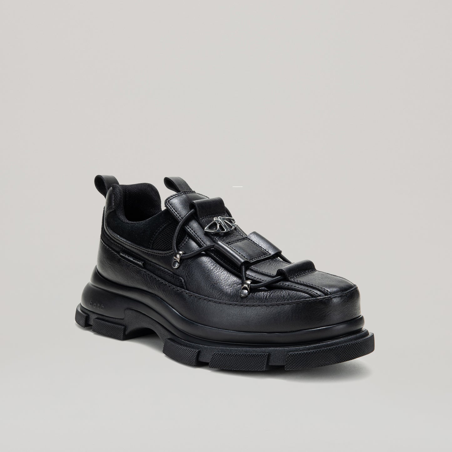 Introducing our GAO EVA TRACKER SNEAKERS! These sleek Black shoes combine hiking boot lacing patterns with a modern and edgy look. Perfect for those who want to stand out on the streets, while staying comfortable with our signature EVA outsole. (And no, it's not a GPS tracker, but it feels like you're being guided by one!)