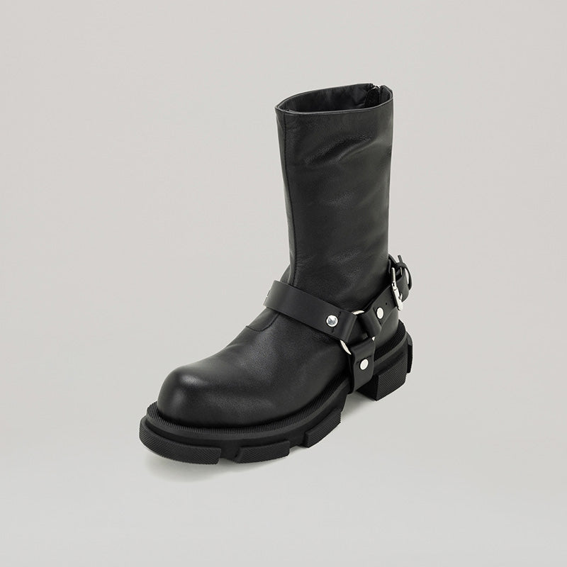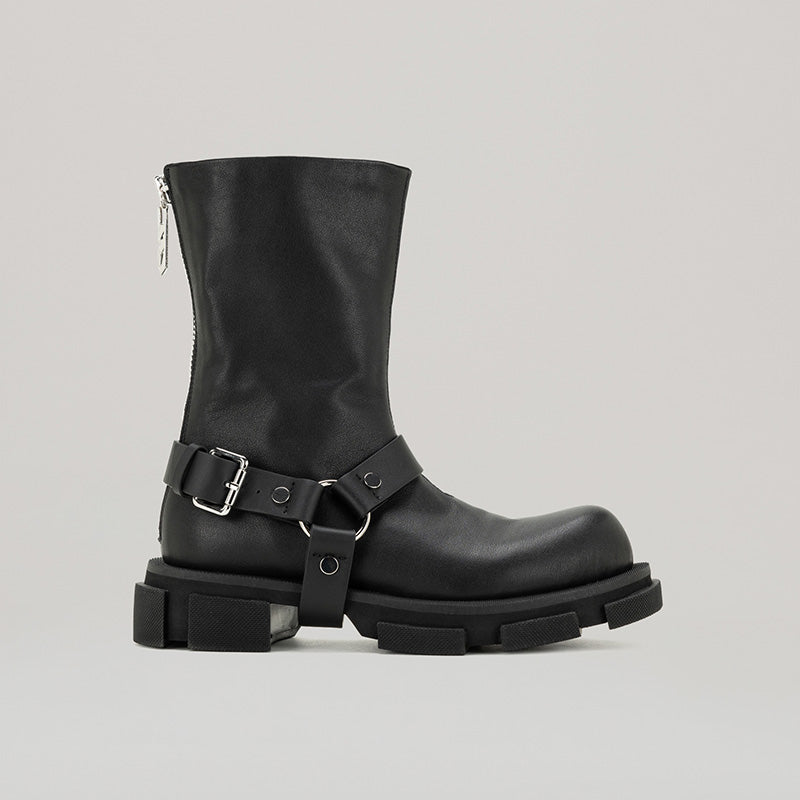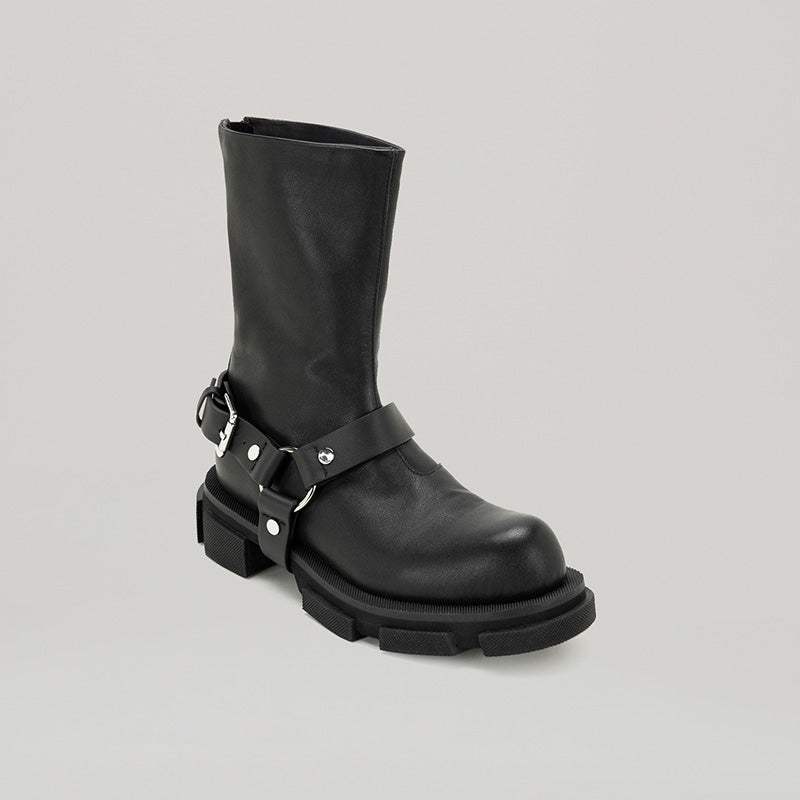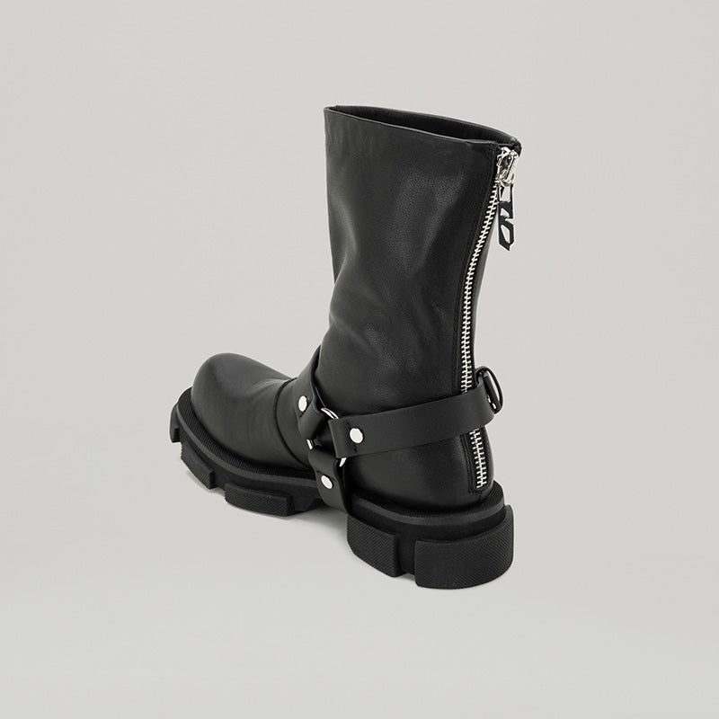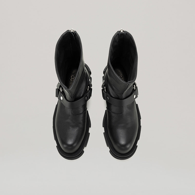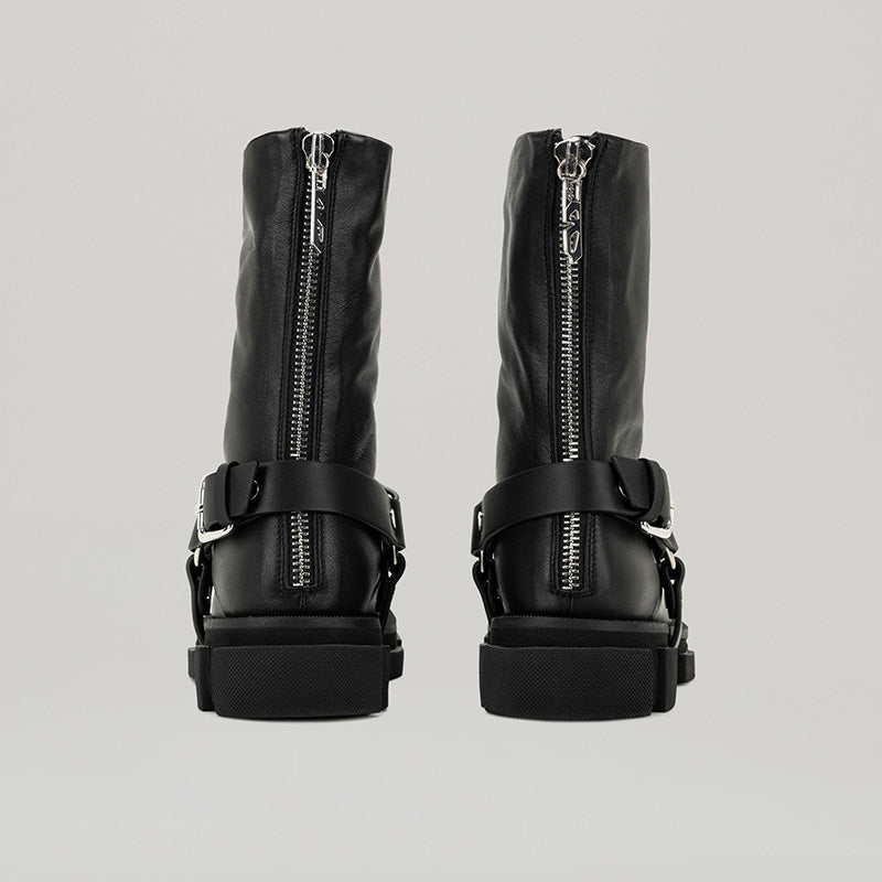 Expertly crafted with 100% calf leather, the both - GAO HARNESS CHELSEA boots in black have a biker-inspired design with a detachable ankle strap and back-zip featuring our iconic logo. Treat yourself to ultimate comfort and style.