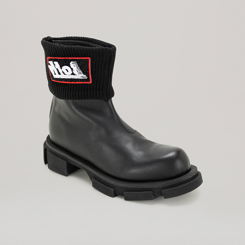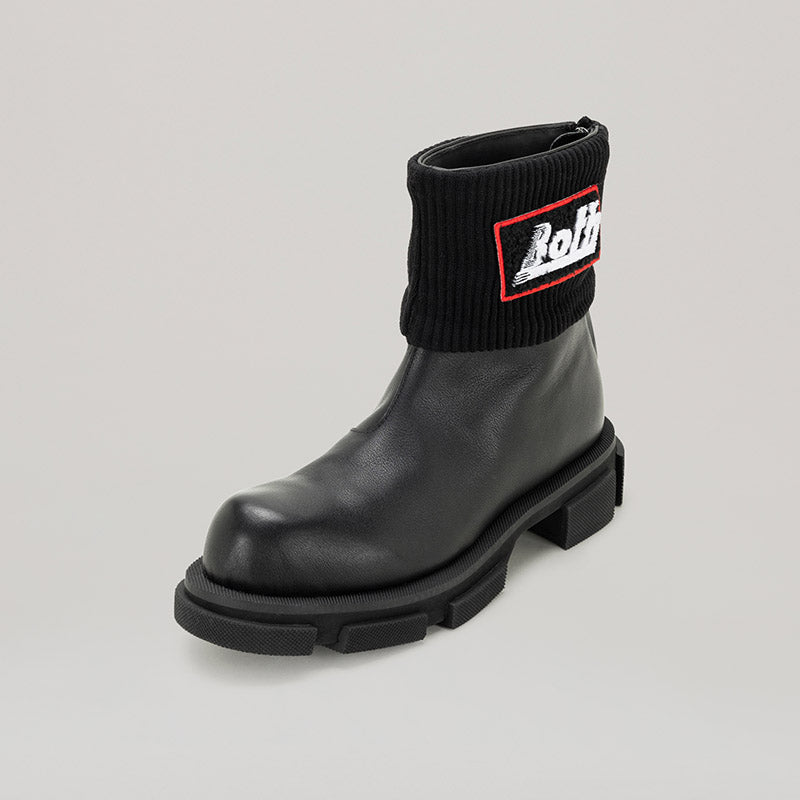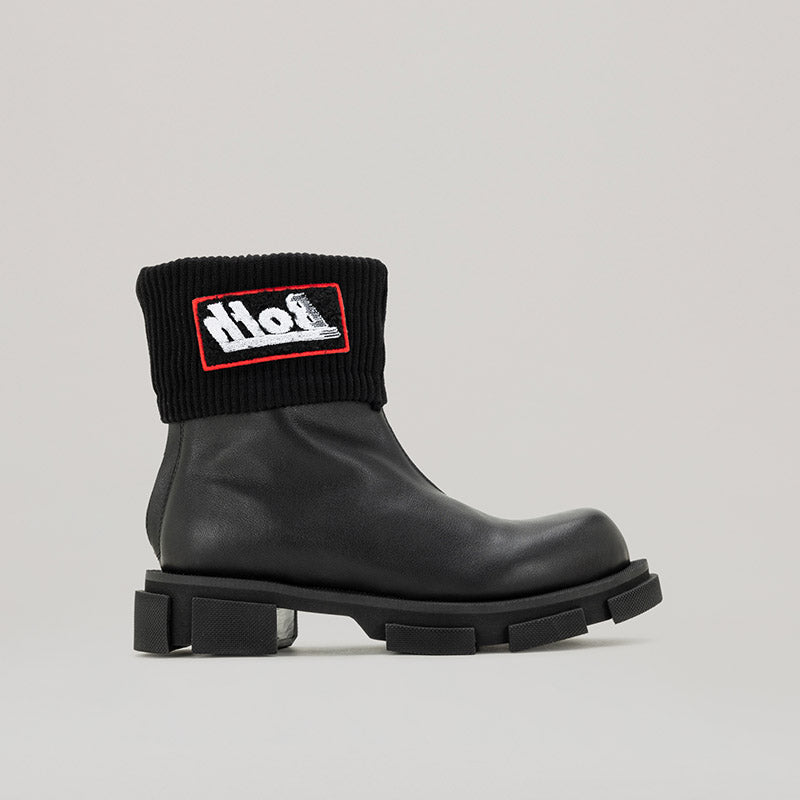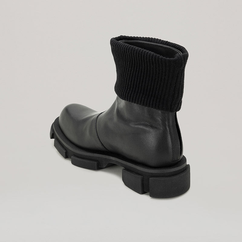 Get a double dose of style with both - GAO MID ZIPPED CHELSEA! These sleek boots feature a convenient zip closure and a unique knit collar, all crafted from high-quality calf leather in a chic black hue. Don't miss out on this stylish and versatile addition to your wardrobe!