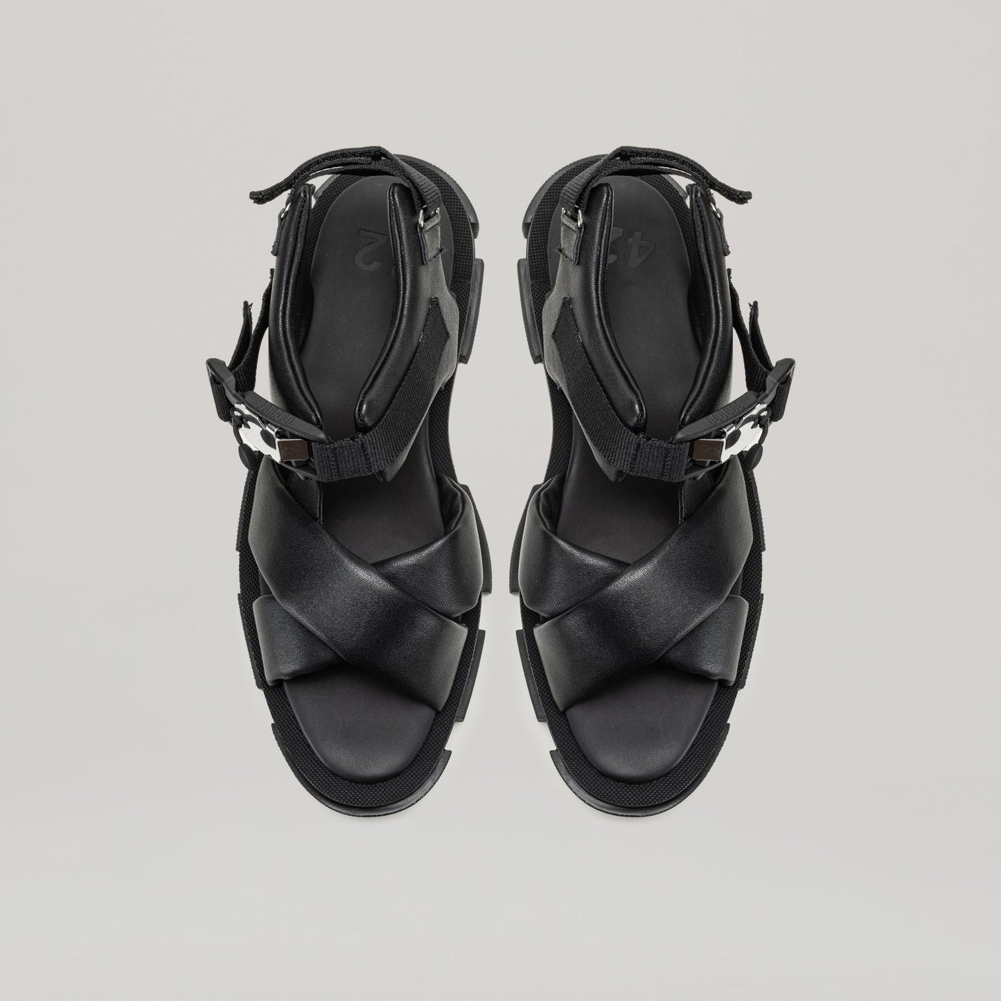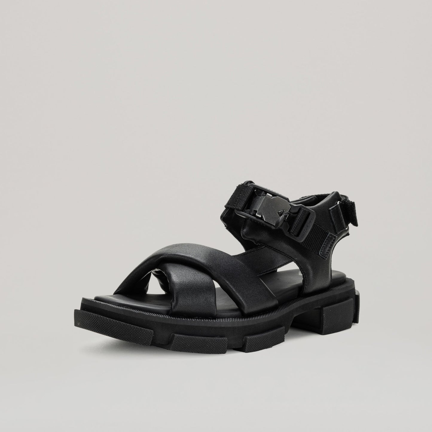 Score a style win with both - GAO SANDAL in sleek black. Made from soft sheep leather, these unisex sandals are perfect for any fashion-forward trendsetter. Comfortable and versatile, these sandals are a must-have addition to your shoe collection.