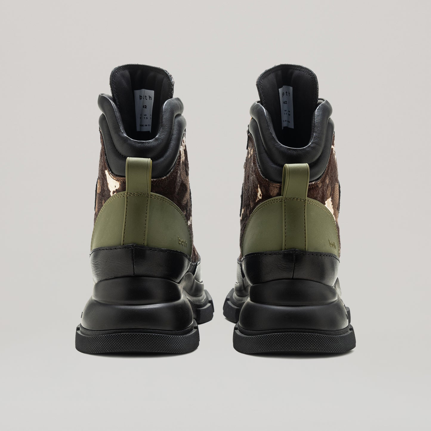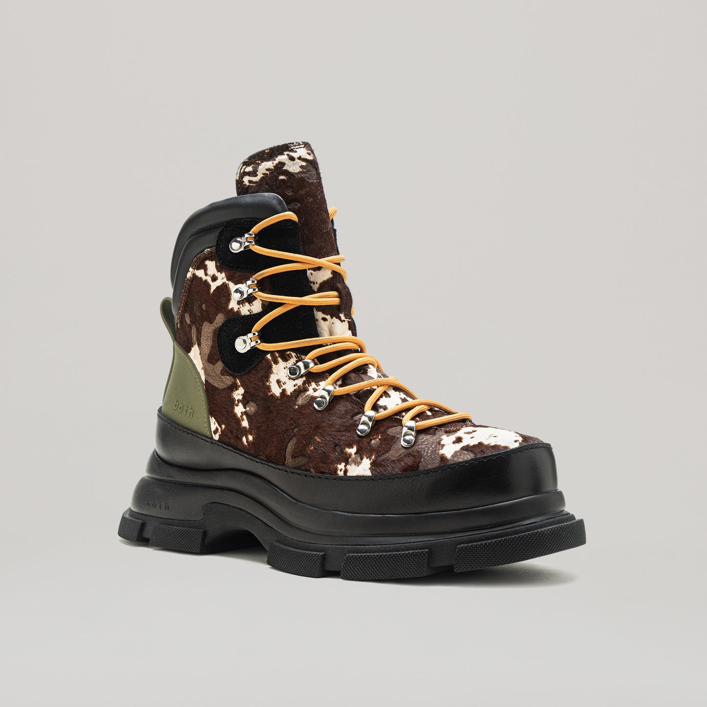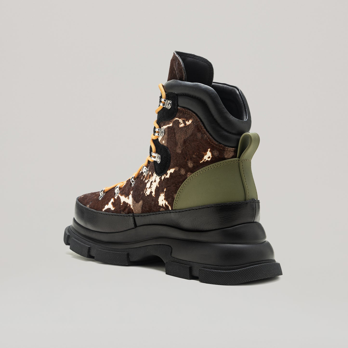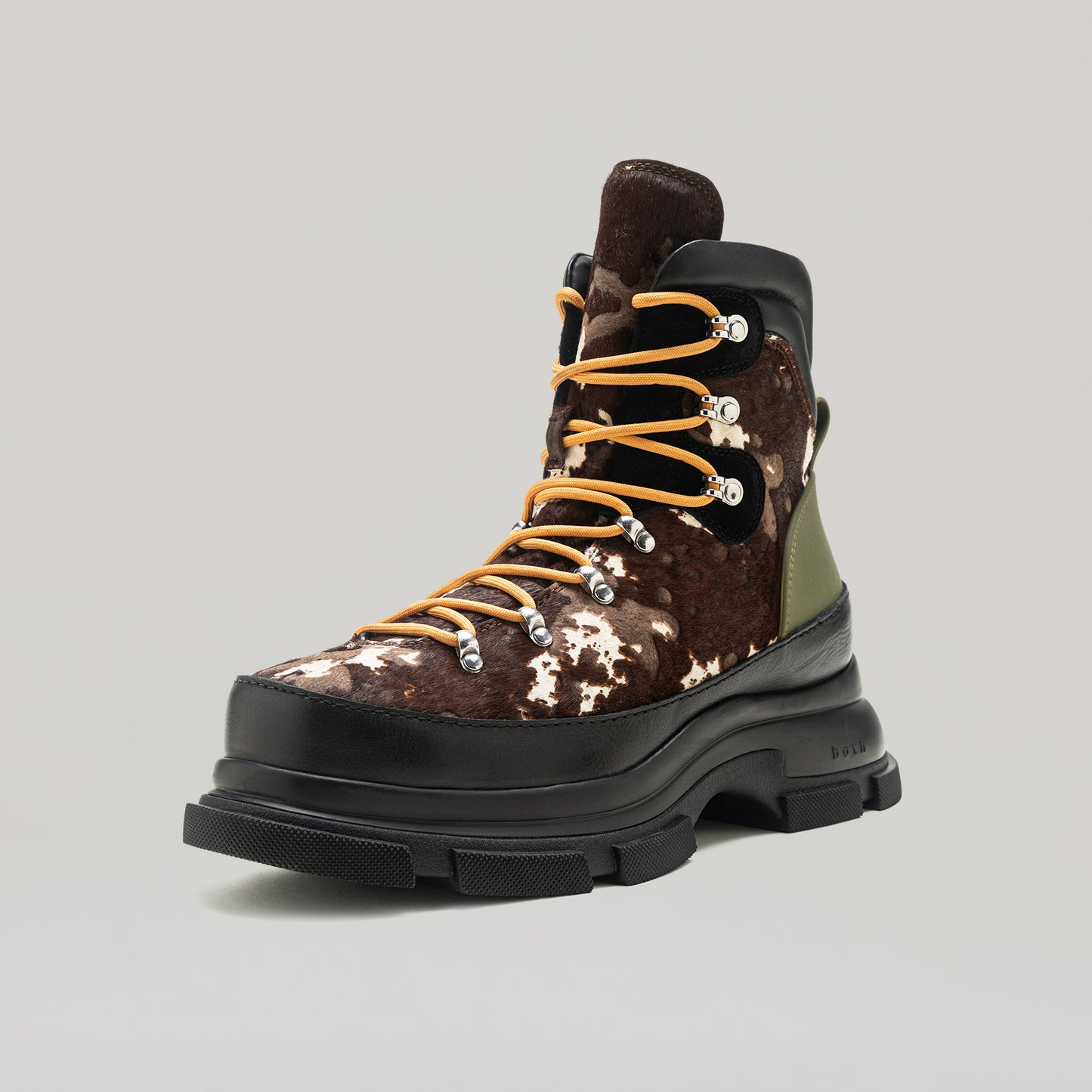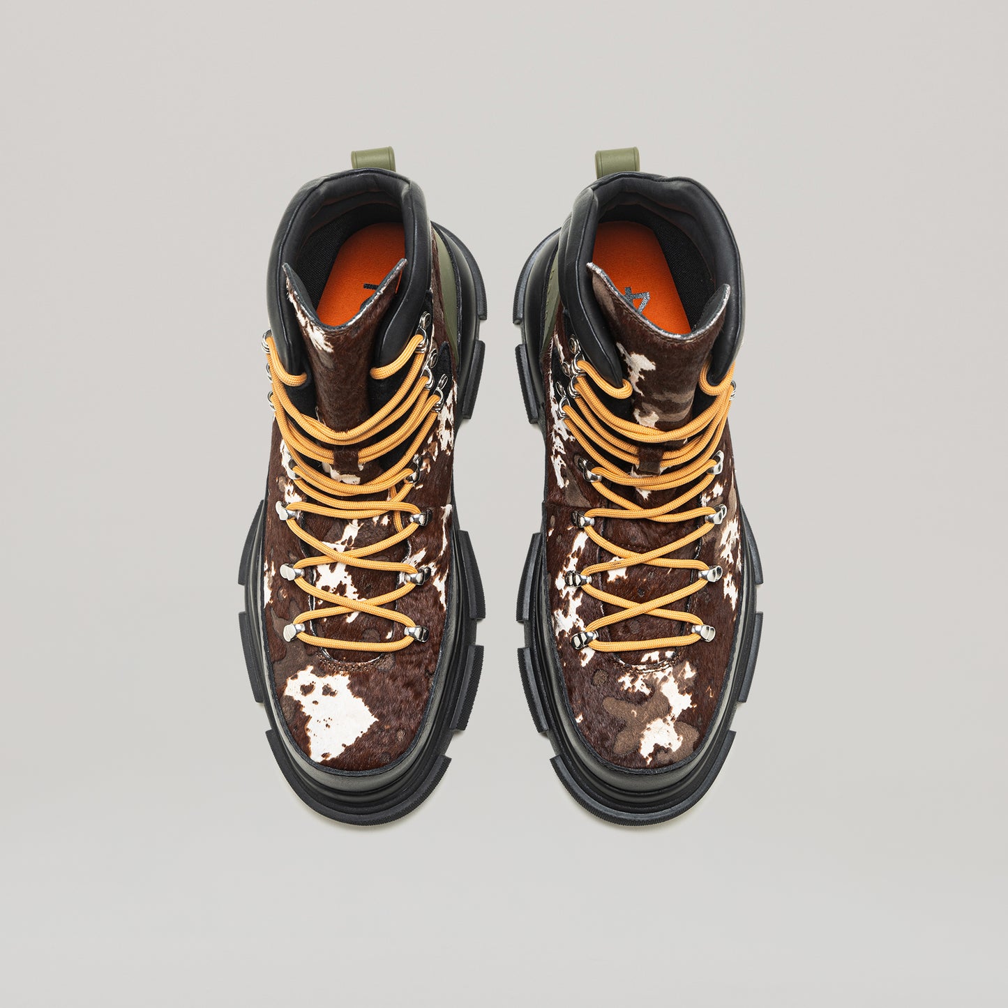 UPPER: 60% Pony Leather + 20% Sheep Leather + 10% Cow Suede + 10% Rubber