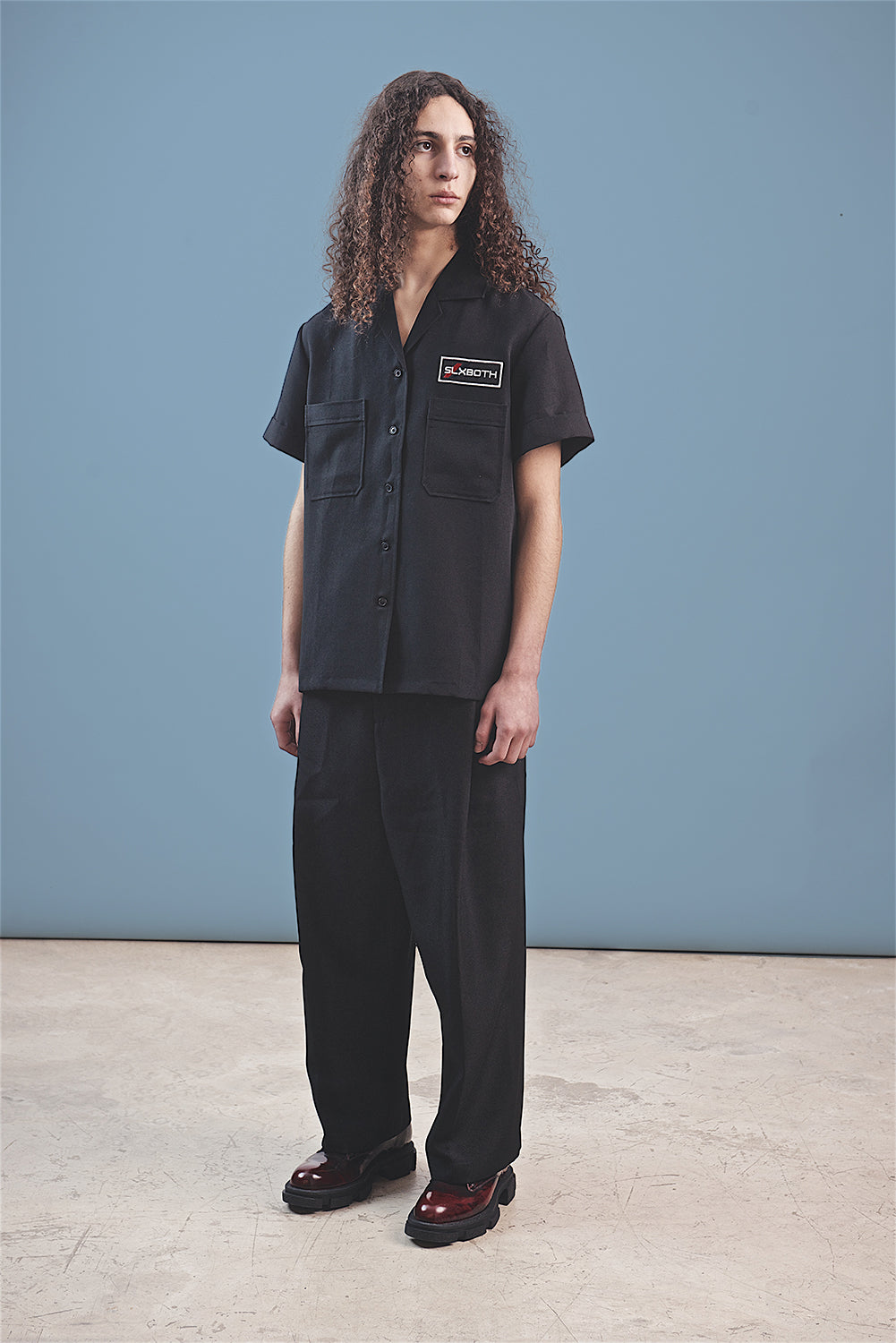 both X SECOND LAYER-POCKET BUTTON DOWN SHIRT-BLACK
